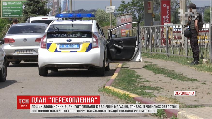 На місці досі залишаються обпалені купюри та документи. Зловмисників шукають. План "Перехоплення" оголосили на Херсонщині та в трьох сусідніх областях, куди могли втекти крадії. Напередодні, чоловіки у масках і зі зброєю вдерлись до торгового центру і вчинили пограбування. Поліція їх наздогнала. Зловмисники почали стріляти і пошкодили патрульну машину. Свою ж підпалили. Втечу продовжили, викравши на заправці інший автомобіль.