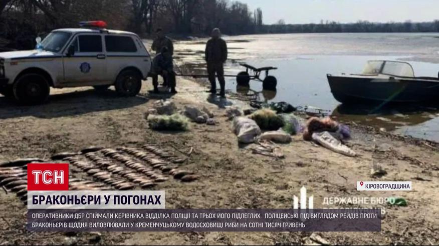На службовій машині і на човні, що був речовим доказом, браконьєрили поліцейські на Кіровоградщині. За цим заняттям у Світловодську оперативники Державного бюро розслідувань заскочили керівника відділка поліції та трьох його підлеглих. За версією слідчих ДБР, поліцейські під виглядом рейдів проти браконьєрів щодня виловлювали в Кременчуцькому водосховищі риби на сотні тисяч гривень. Ловили сітками, а потім збували через оптових продавців. Підозрювані використовували службове авто та човен, який зберігався, як речовий доказ в одному з кримінальних проваджень. За попередніми підрахунками, лише за день "рейду" вони виловили риби на понад 200 тисяч гривень. Деталі – в ТСН.