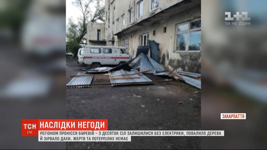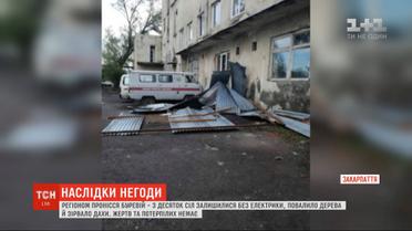 З десяток знеструмлених сіл, зірвані дахи й повалені дерева. Закарпаттям пронісся буревій. За неповних пів години стихія стягнула покрівлі з пологового будинку й реанімації районної лікарні.