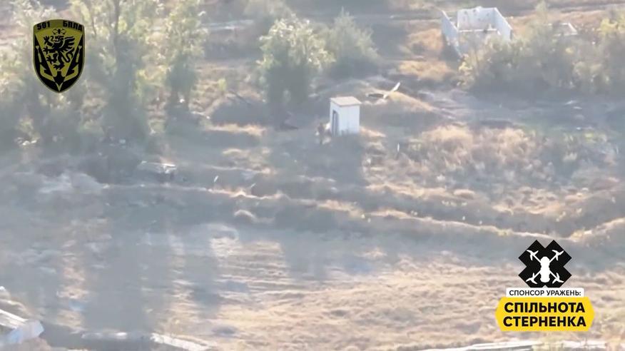 На кадрах видно відносно відкриту територію, на якій розташована вулична вбиральня. Поруч з нею стоїть людина у військовій формі, судячи з деталей - російський окупант. На відео зафіксовано, як при наближенні українського дрона окупант входить до туалету, після чого лунає вибух.