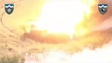 Наші бійці поділилися яскравими кадрами добивання ворожої БМП з “мангалами”. Кадри оприлюднили бійці 109-го гірсько-штурмового батальйону. Так, один із “сараїв” продемонстрував потужну детонацію.