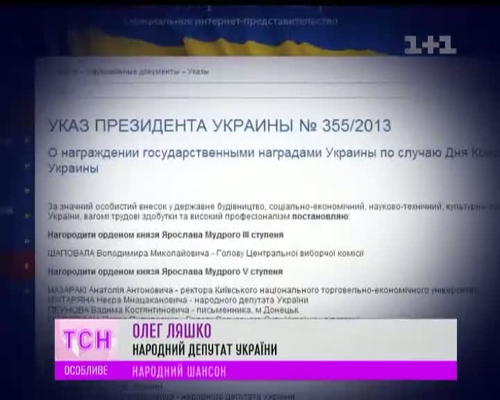 Композитору, виконавцю, поетові - з таким формулюванням президент надав звання народного артиста Олегу Гаврилюку. Сам себе він називає "поетом-філософом" і порівнює з Єсеніним та Пушкіним.