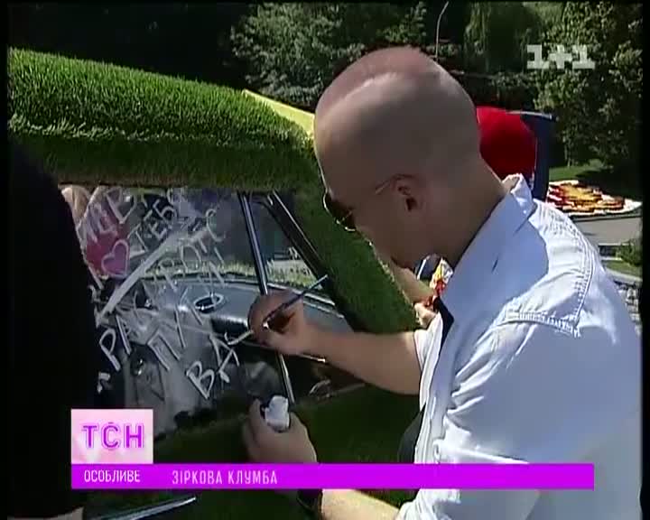 Виконавці Влад Дарвін та Світлана Тарабарова залишили автографи на склі раритетної " Волги-21". І відпустили затюнинговане справжньою свіжою травою авто подорожувати містом.