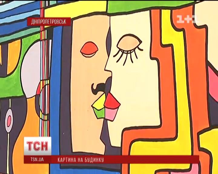 Полотно площею у 30 квадратних метрів п'ятеро художників почепили біля входу до звичайного будинку. У тому ж стилі розмалювали і парапети. Щоб остаточно перетворити звичайний вхід на затишний куточок, там поставили кілька столиків та стільців пофарбованих у яскраві кольори.